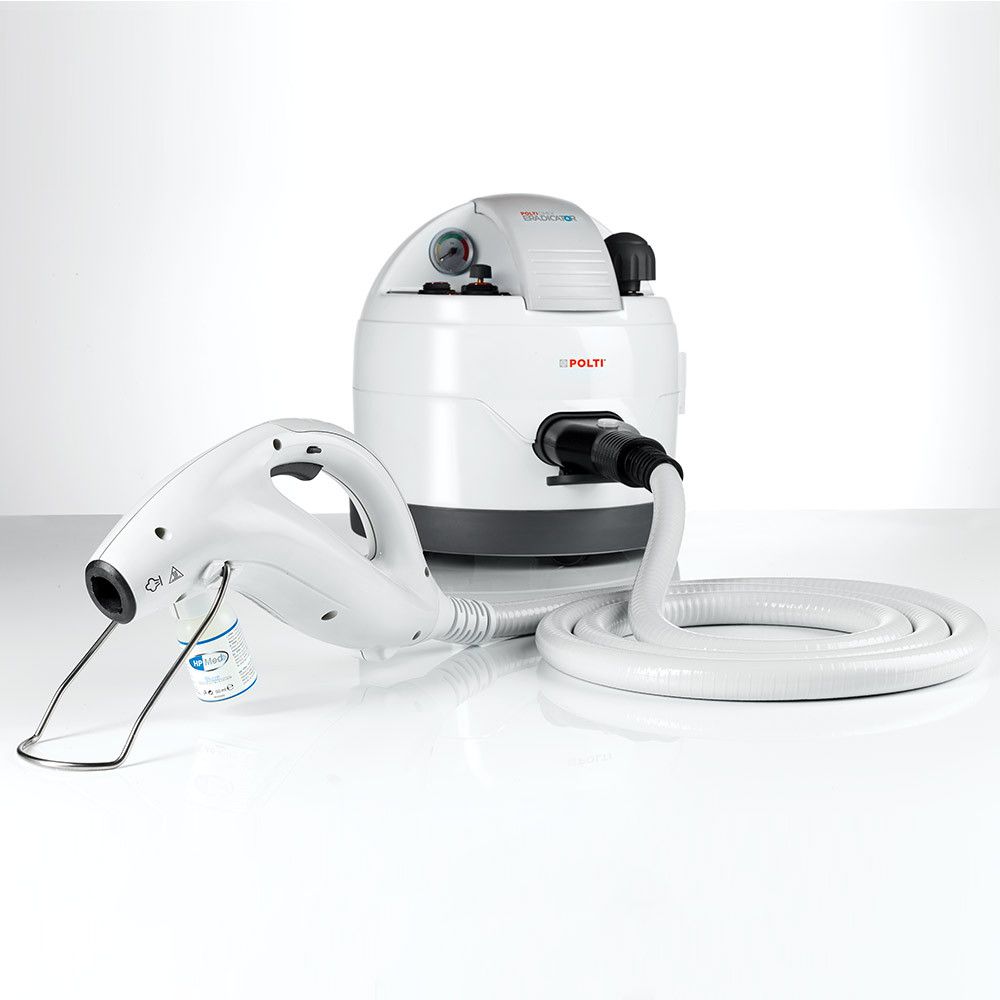 De Cimex Eradicator is een innovatieve methode om op effectieve, permanente en natuurlijke wijze een bedwantsenprobleem op te lossen. De droge stoom, op conventionele wijze gegenereerd in de boiler en verder verhit tot 180 graden in het handvat, kan in één keer de eitjes en larven elimineren, alsook een hoog percentage volwassen exemplaren. Bovendien kan het product HP Med worden gebruikt voor desinfectie en geurverbetering. De kleine injectieflacon wordt eenvoudig aan het handvat gemonteerd. HP Med verbetert het effect van de behandeling niet.