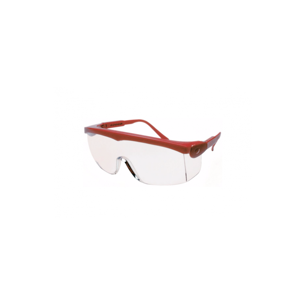 De klassieke veiligheidsbril onder de panoramaveiligheidsbrillen met monolens van MSA. Met rood montuur en heldere polycarbonaat lens. Voorzien van anti-krascoating “MSA TuffStuff-coating” die voor een langere levensduur conform EN 166 “K” zorgt. Beschikt over geïntegreerde zijbescherming. De brilpoten kunnen in 5 stappen worden versteld en kunnen ook aan de slaap worden aangepast.